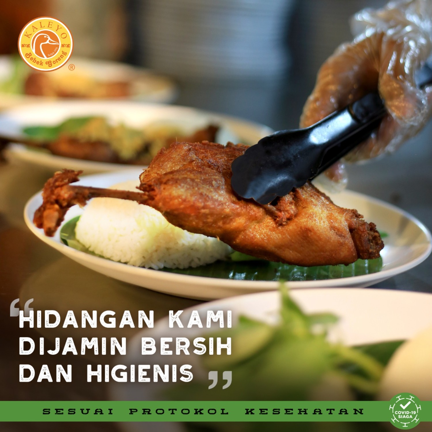 Hai Kaleyo Lovers ! Bebek Kaleyo selalu menjaga komitmen pelayanannya untuk kenyamanan dan menjaga kebersihan yang menjadi hal utama yang harus di perhatikan. Bisa dibuktikan, makanan di bebek kaleyo di jamin higenis dan bersih. cuss berangkat ke kaleyo terdekat yah, mimin tunggu !