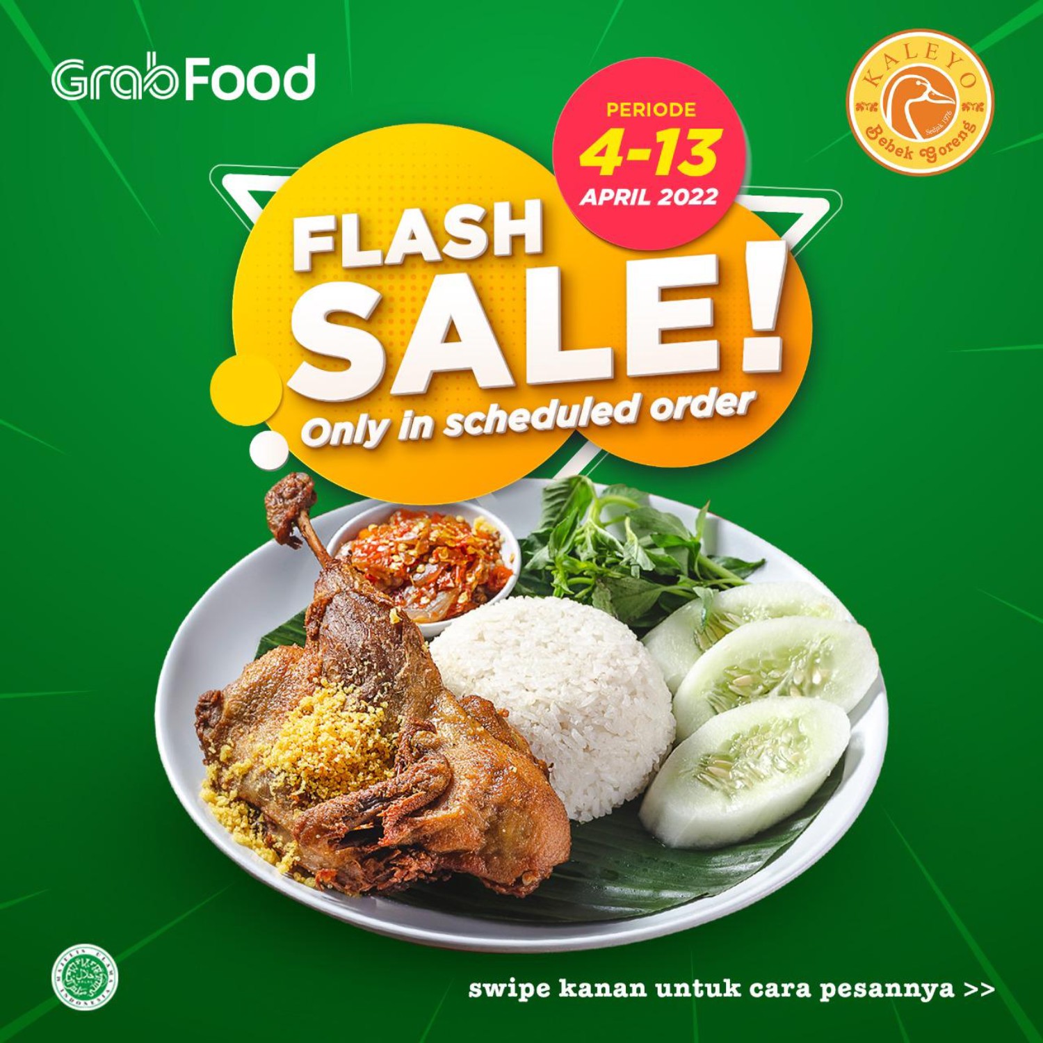 Kaleyo Lovers ada promo nihhh, yuk simak informasinya dengan jelas ya! Bulan Ramadan penuh berkah, Bebek Kaleyo hadir menjadi hidangan buka puasa dan sahur kamu. Eitss... tentunya ada promo menarik mulai 4-13 April 2022 di Grabfood, kali ini flash sale Bebek Kaleyo bersama Grabfood untuk pemesanan menu " Scheduled Order" Untuk mendapatkan Flash Sale, kamu harus menggunakan Schedule order dengan ketentuan: - pemesanan dimasukan paling lambat jam 15.00 setiap hari nya - untuk pemilihan schedule order jam *15.00 - 17.30* dapat menggunakan Flash Sale Buruan guys! Promo Terbatas!