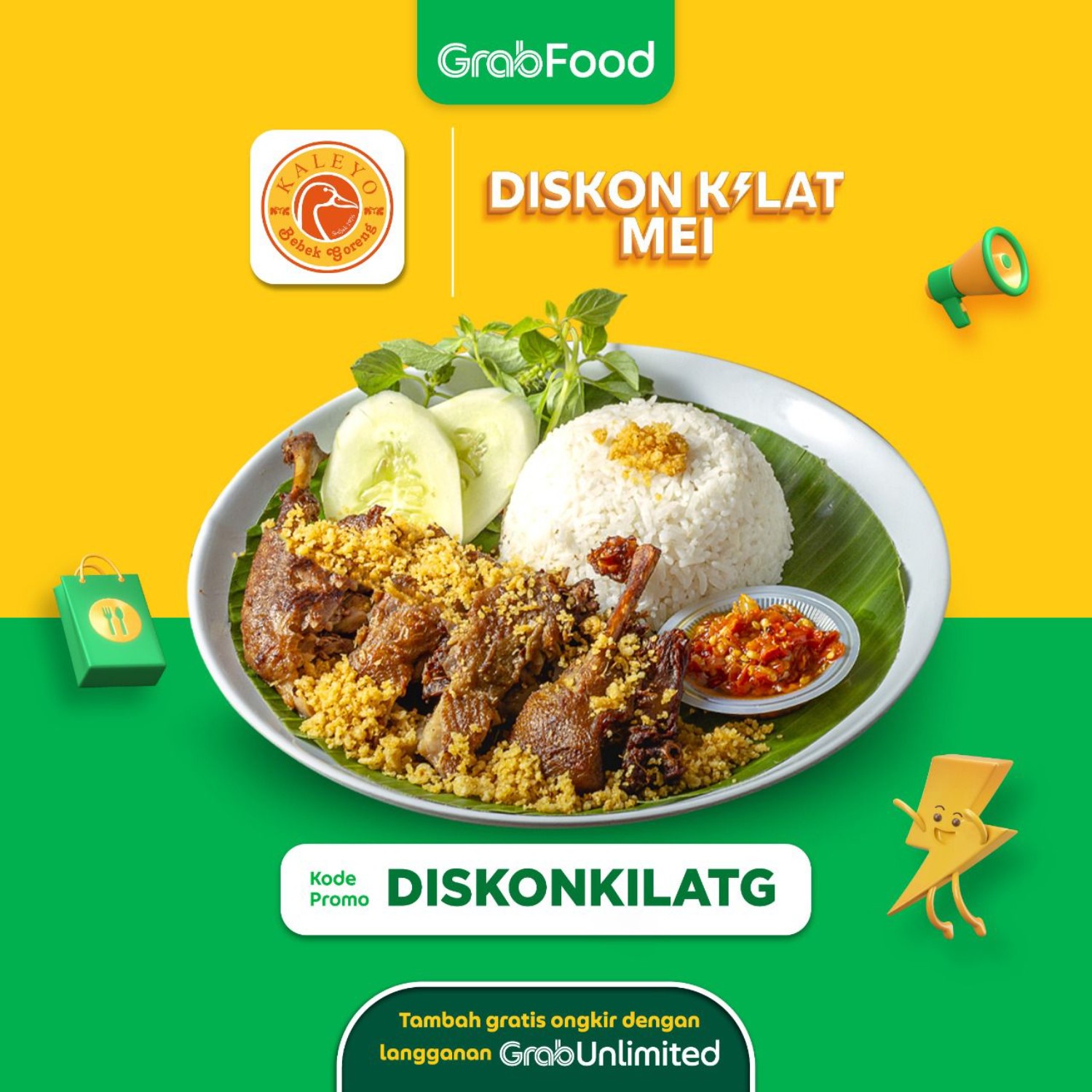 Kaleyo Lovers masuk tanggal pertengahan udah mulai terkena serangan dompet kering nih guys, tapi Bebek Kaleyo bersama dengan Grabfood punya solusi nya nih, jadi kita tetep bisa nikmatin hidangan lezat Bebek Kaleyo! Flash Sale Grabfood with Bebek Kaleyo mulai tanggal 13 - 16 Mei 2022, kamu cukup perlu belanja min 89K dan dapatkan diskon sampai dengan 50% Max potongan Rp.50.000, tunggu apa lagi cuss langsunng order seakarang juga dan dapatkan promo nya.