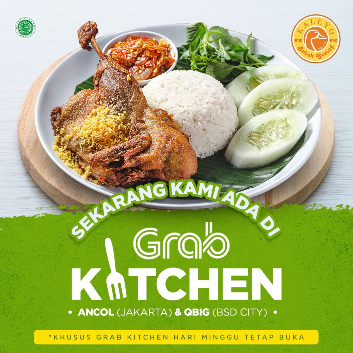 MAU NYAPA KALEYO LOVERS ANCOL DAN BSD ! Guys !!!! Penting banget nih, buat kalian yang ada disekitar Ancol dan BSD karena sekarang Bebek Kaleyo Hadir di Grab Kitchen. Kami jadi lebih dekat untuk Kaleyo Lovers tercinta. Khusus grab kitchen hari minggu tetap ya.. Coba check aplikasi Grabfood kalian yaa jangan sampai ketinggalan!