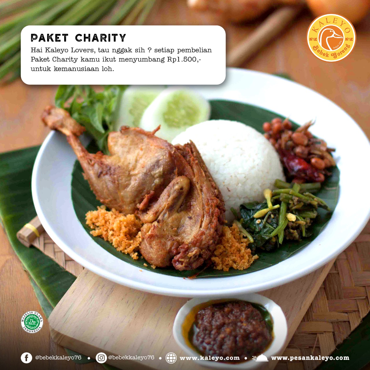 Pelanggan setia Bebek Kaleyo pasti udah tau menu kita yang satu ini, mengenyangkan sekaligus berbagi yaitu "Paket Charity". . Yuk pesan sekarang juga dan sebarkan kebaikan !