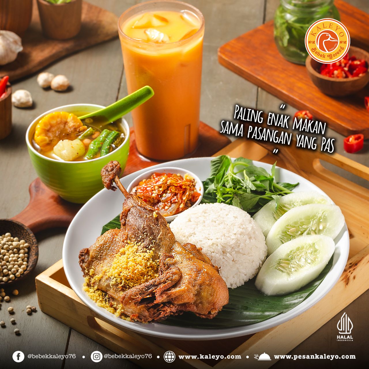 Kaya pilihan kamu makan di Bebek Kaleyo yang uda pasti enak guys. . Recommend mimin Nasi Bebek Muda Goreng Kremes, Sayur Asem, Es Thai Tea. Kalau kamu ?