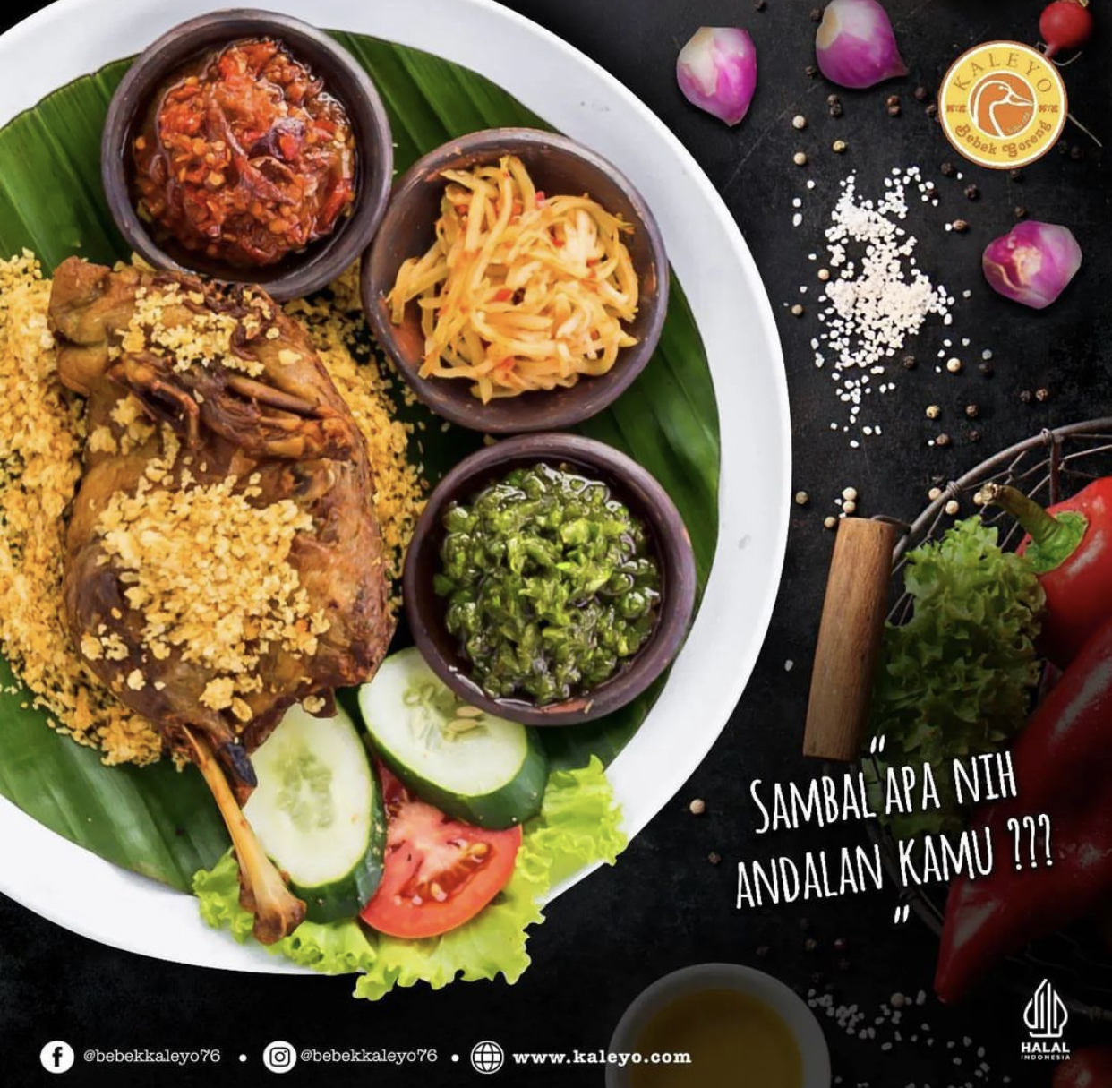 Hai kaleyo lovers ! Selain sambal merah yang dahsyat, bebek kaleyo juga punya macam macam sambal buat nemenin makan siangmu . Ada sambal mangga favorit minin, sambal ijo, sambal cetar dan sambal rica . Hayoo .. mana nih yang jadi andalan mu ?