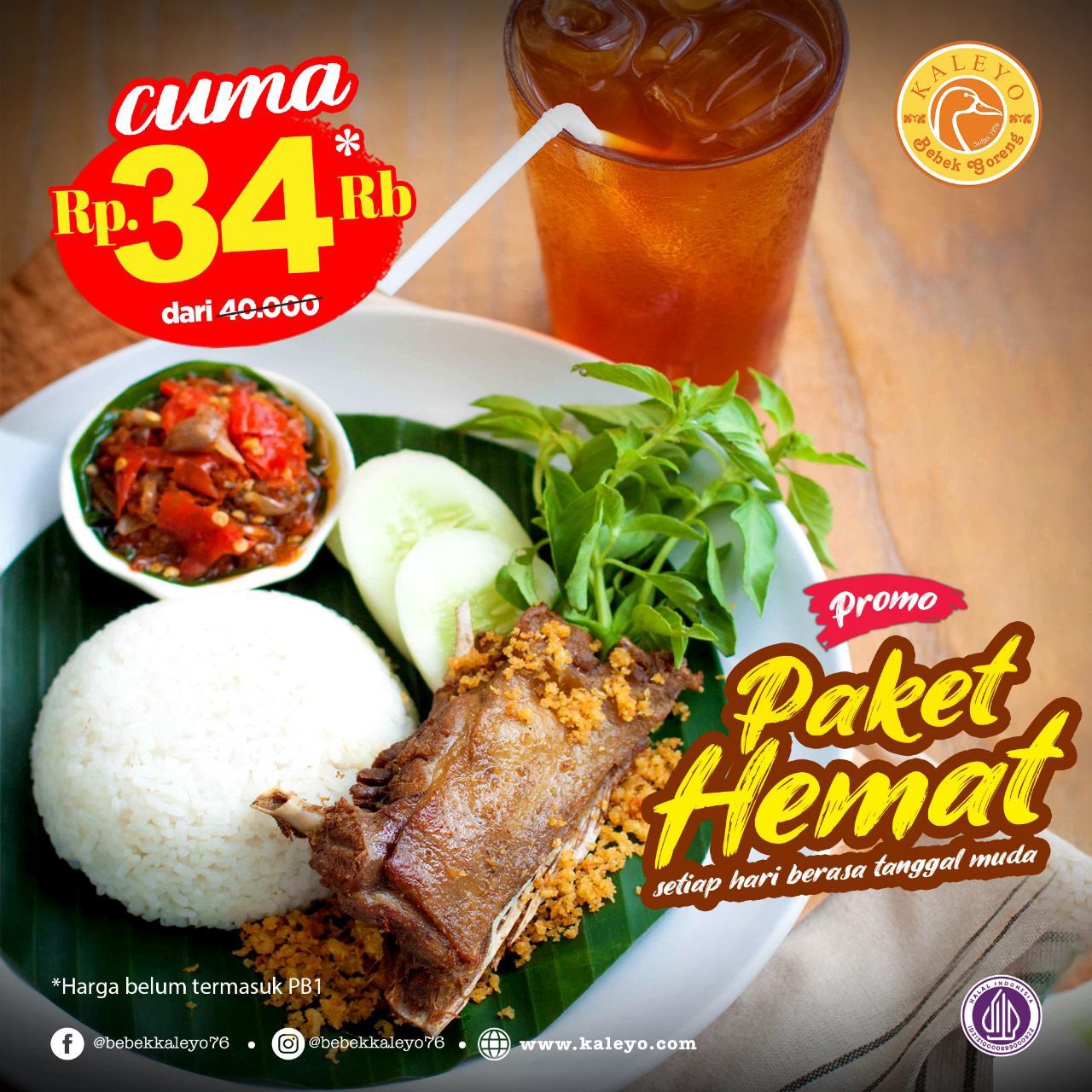 Mau makan enak tanpa khawatir kantong bolong? Paket Hemat Bebek Kaleyo jawabannya! Cuma 34.000 rupiah kamu bisa menikmati bebek lezat, nasi pulen dan es teh yang menyegarkan???? Yuk, habiskan tanggal tua dengan senyum dan perut kenyang! ????????????