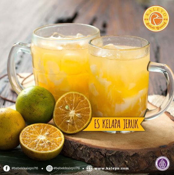 Seru makan pedas di Bebek Kaleyo, tambah seru lagi minum es kelapa jeruknya! Pedasnya hilang, sensasi segar datang! Minuman favorit siapa nih, Kaleyo Lovers?