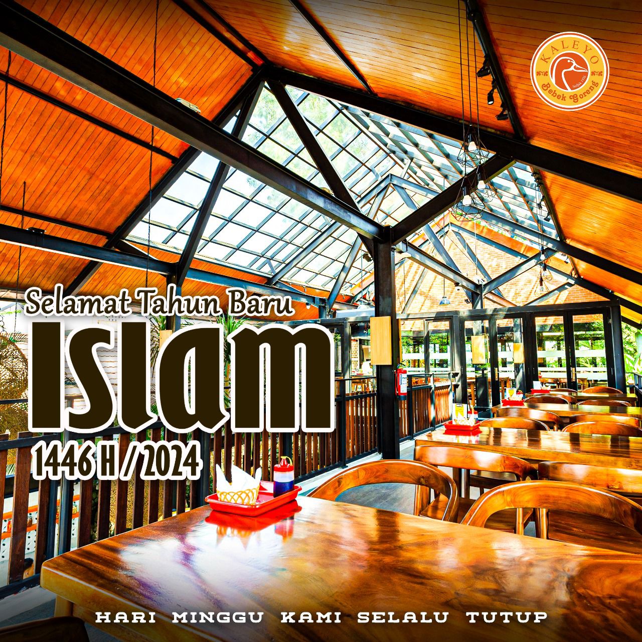 Selamat Tahun Baru Islam 1446 H! Kami dari Bebek Kaleyo mengucapkan selamat menyambut tahun baru Islam kepada semua pelanggan setia kami. Mimin juga mau infoin, di hari Minggu, semua outlet Bebek Kaleyo tutup, ya. Terima kasih atas pengertian dan selamat berakhir pekan