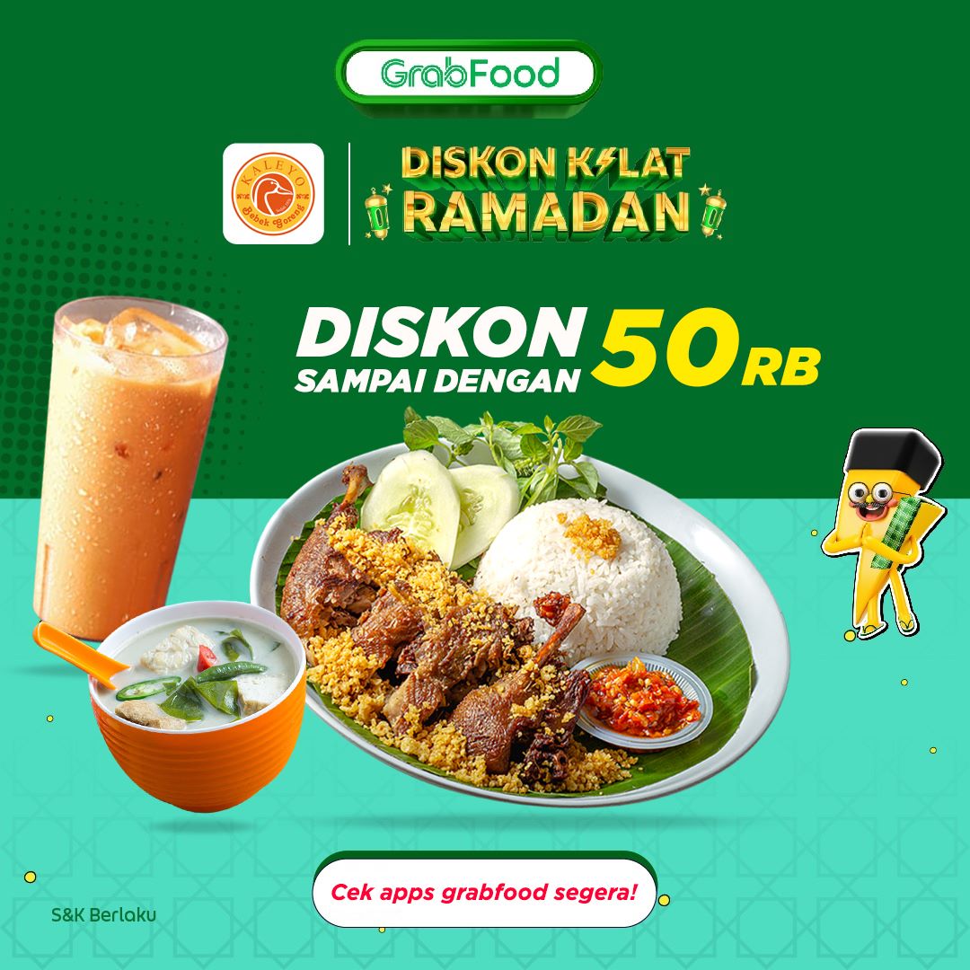 Hai kaleyo lovers ! Pesan apapun yang kamu suka dan dapatkan potongan harga sampai dengan 50ribu ! S&K berlaku yaa .. buruan order bebek kaleyo di aplikasi grab food sekarang. Promo berlaku hingga 16 April 2023